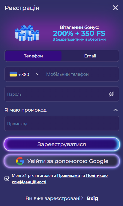 | Демо | Може бути доступним для окремих ігор на сайті, залежно від умов платформи. |